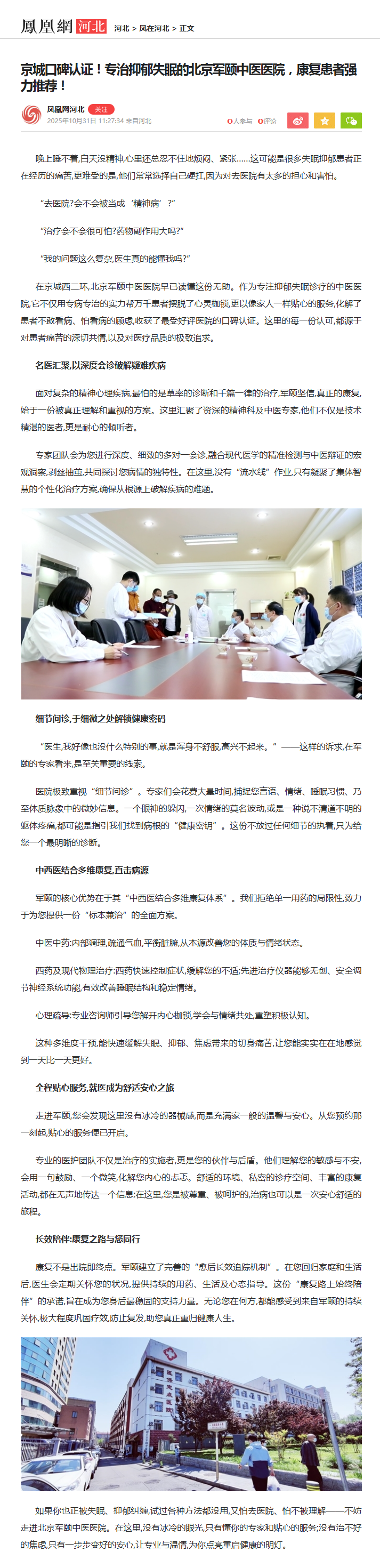 如果你也正被失眠、抑郁纠缠,试过各种方法都没用,又怕去医院、怕不被理解——不妨走进北京军颐中医医院。在这里,没有冰冷的眼光,只有懂你的专家和贴心的服务;没有治不好的焦虑,只有一步步变好的安心,让专业与温情,为你点亮重启健康的明灯。
